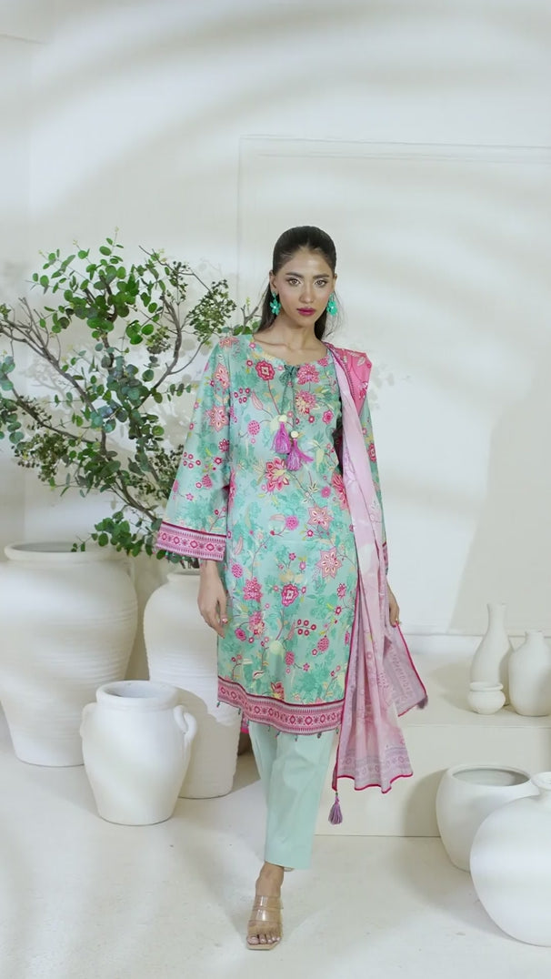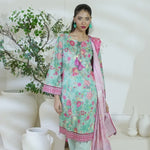 Brighten up your wardrobe with our 3-Piece Unstitched Lawn Collection. Featuring a vibrant printed shirt, cambric dyed trouser, and a beautifully printed dupatta.