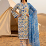 Elegant 3-piece suit in premium printed lawn silk. Includes a breathable shirt, trousers, and a lightweight dupatta. Perfect for any occasion.