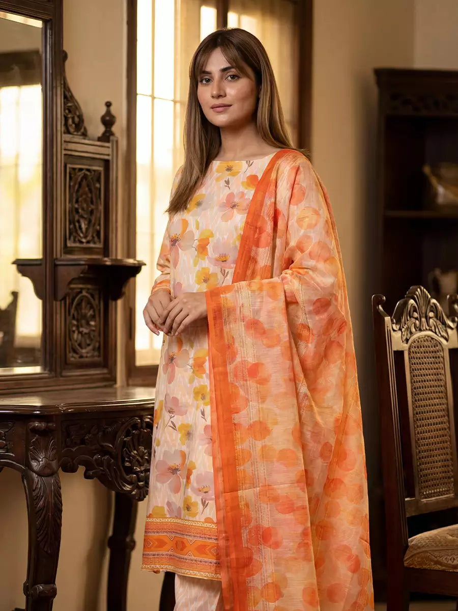 3PC Unstitched Printed Silk Lawn Suit (SUNS7ASI363)