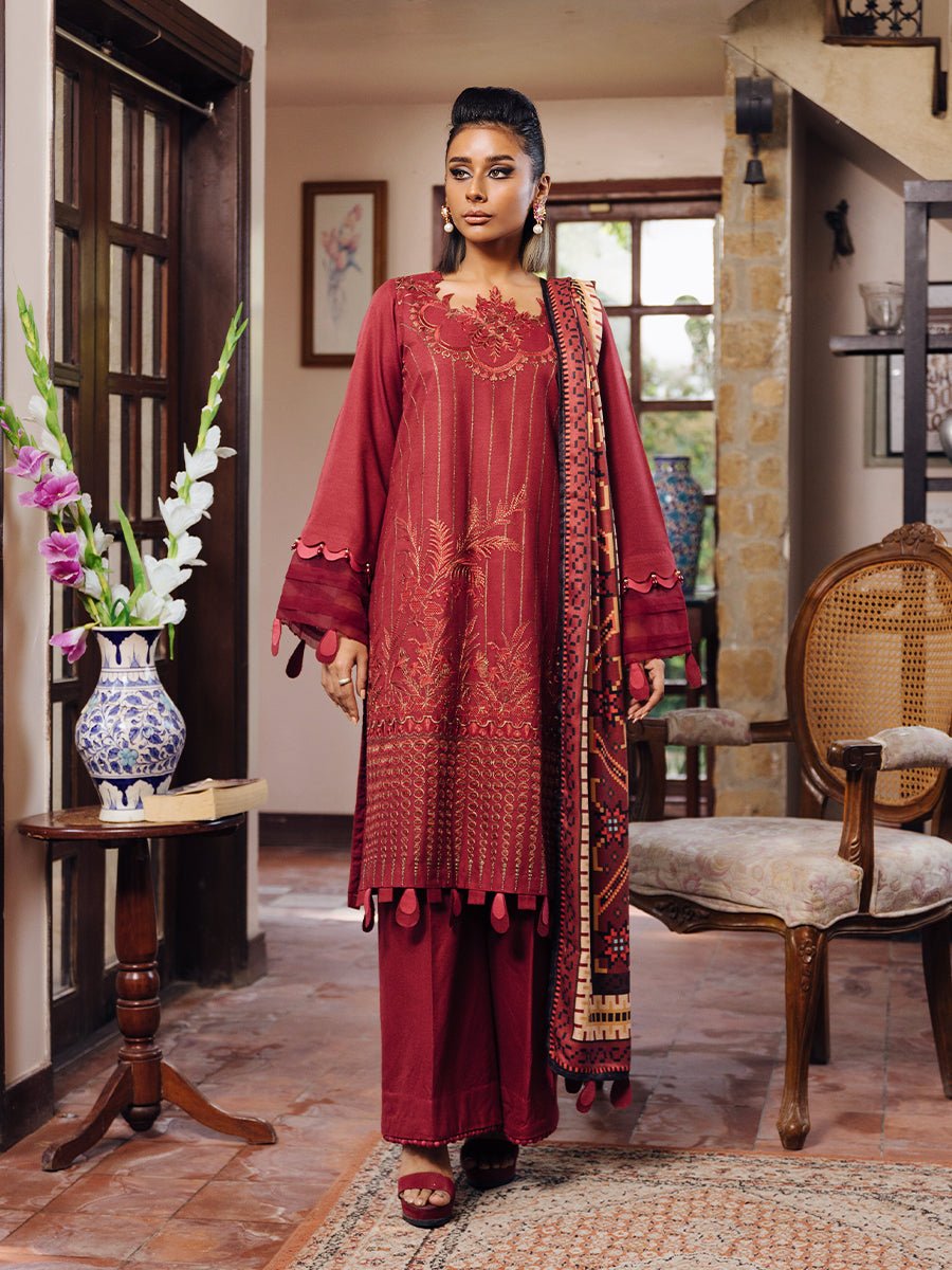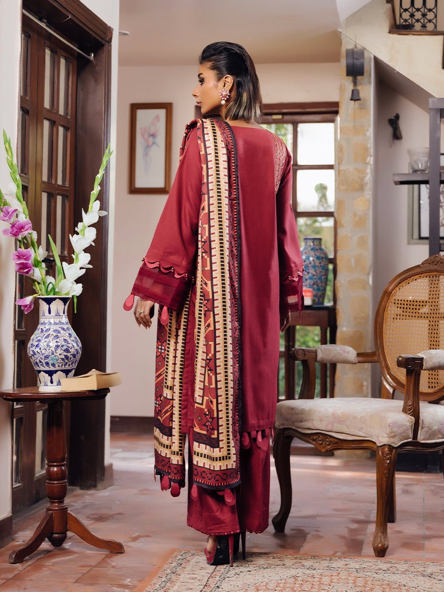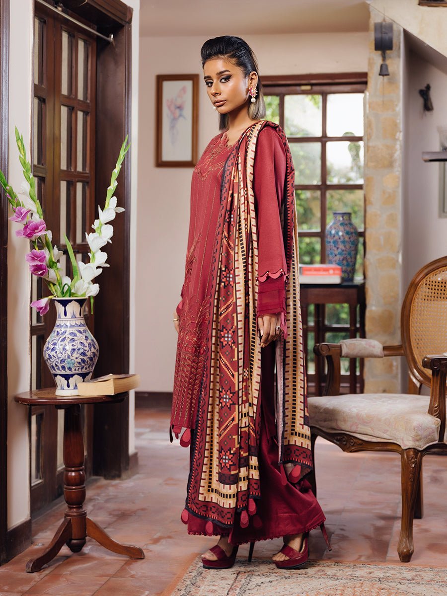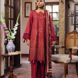 3pc Unstitched Winter Embroidered Suit With Shawl Peach Leather (PLEMB-07UT)