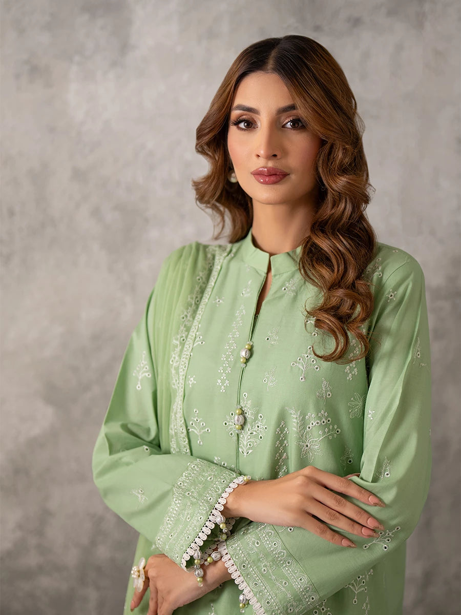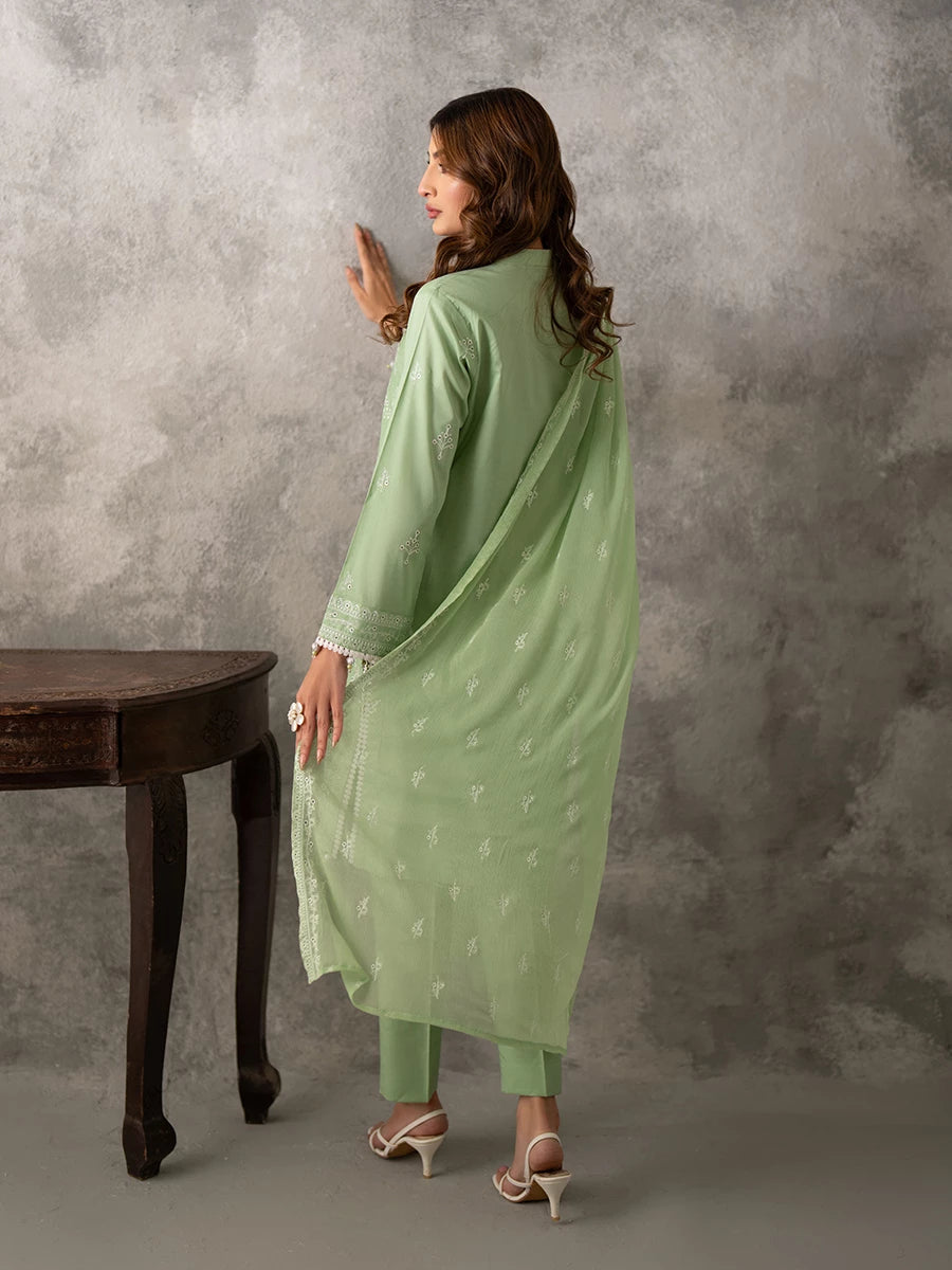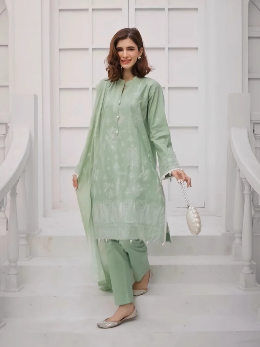 Introducing our stunning summer 3-piece chikankari collection, a perfect blend of elegance and tradition. The lightweight, breathable fabric is adorned with intricate chikan embroidery, ensuring both comfort and style during the warm summer days.