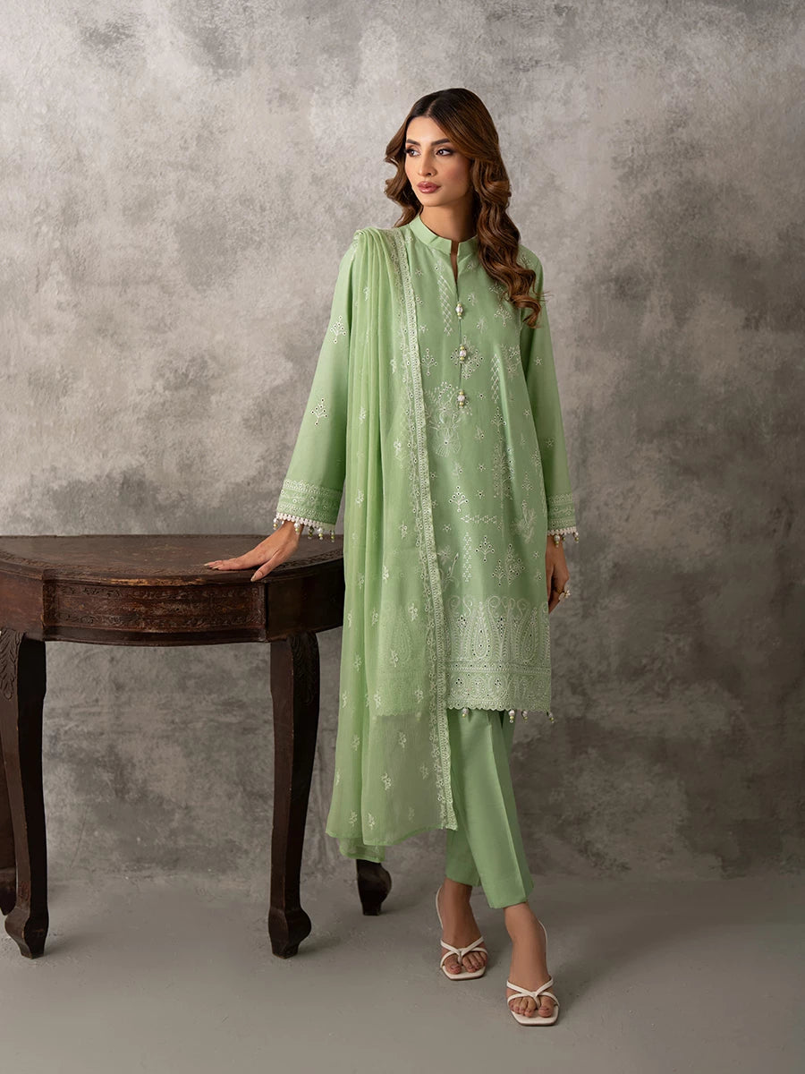 3PC UNSTITCHED CHIKANKARI EMBROIDERED LAWN SUIT