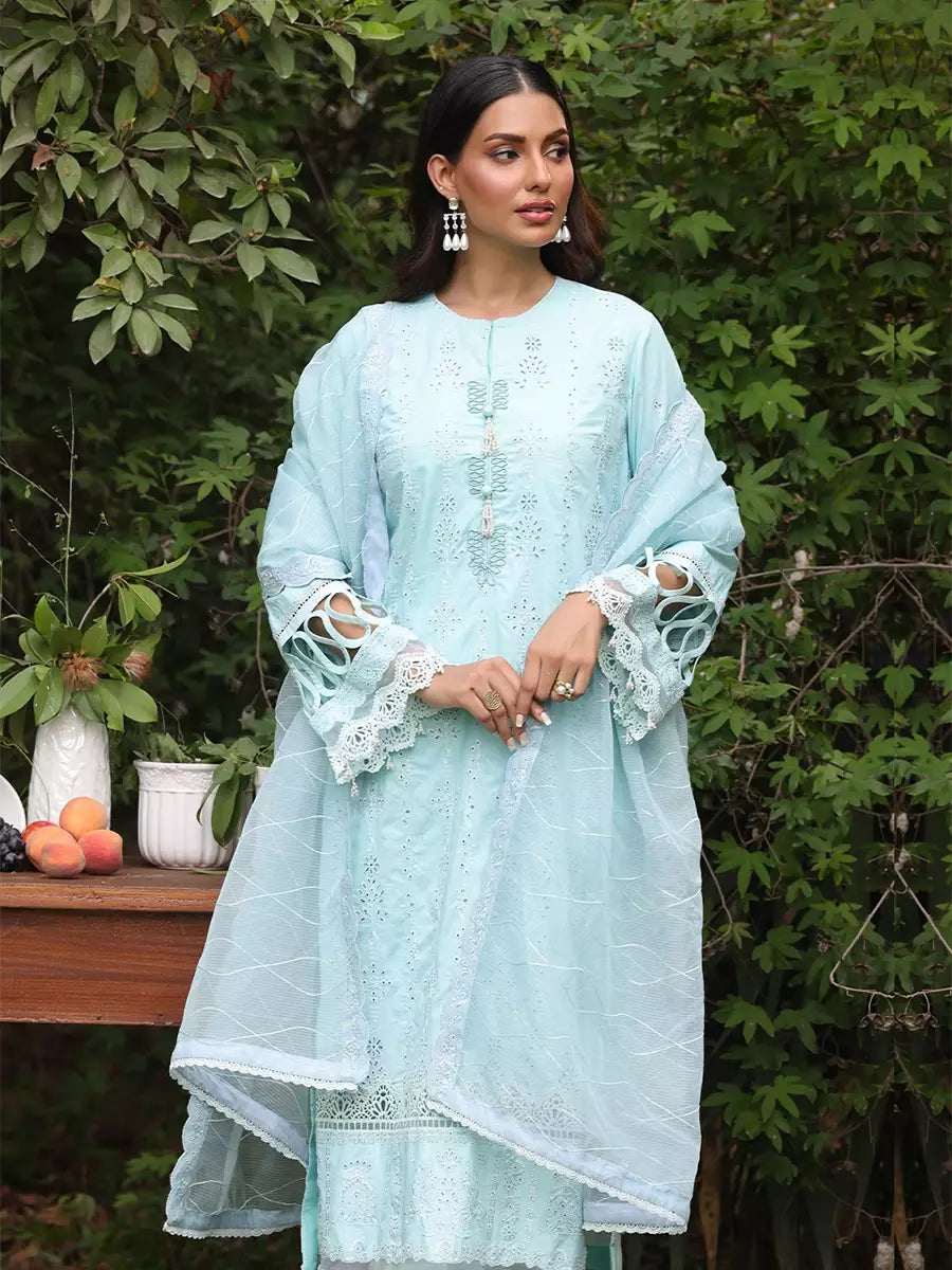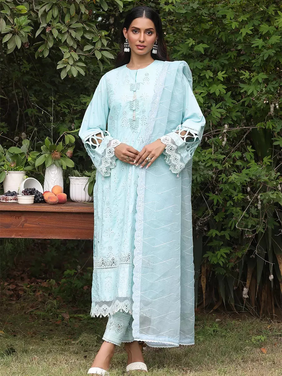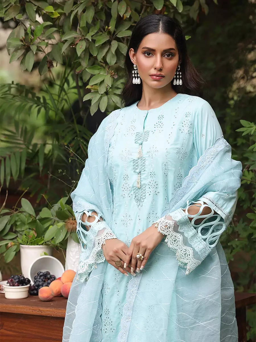 Brighten your wardrobe with our sky blue chikankari outfit, featuring intricate embroidery and a flowing chiffon dupatta—perfect for a fresh and elegant look