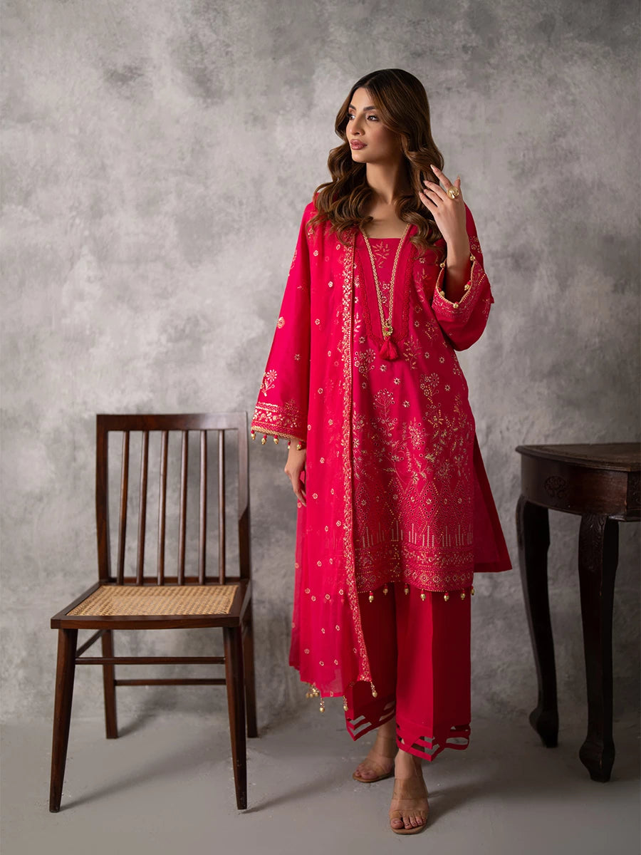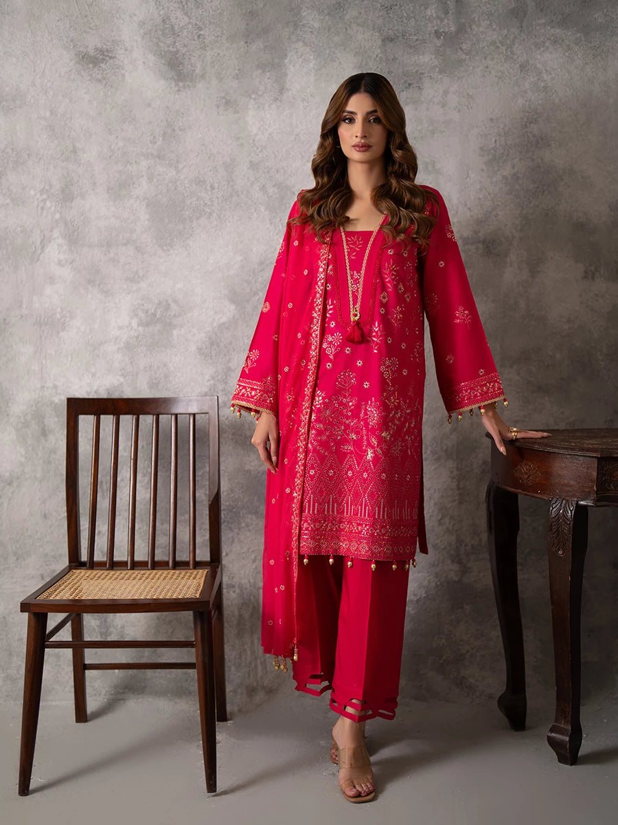 3PC UNSTITCHED EMBROIDERED LUXURY LAWN SUIT