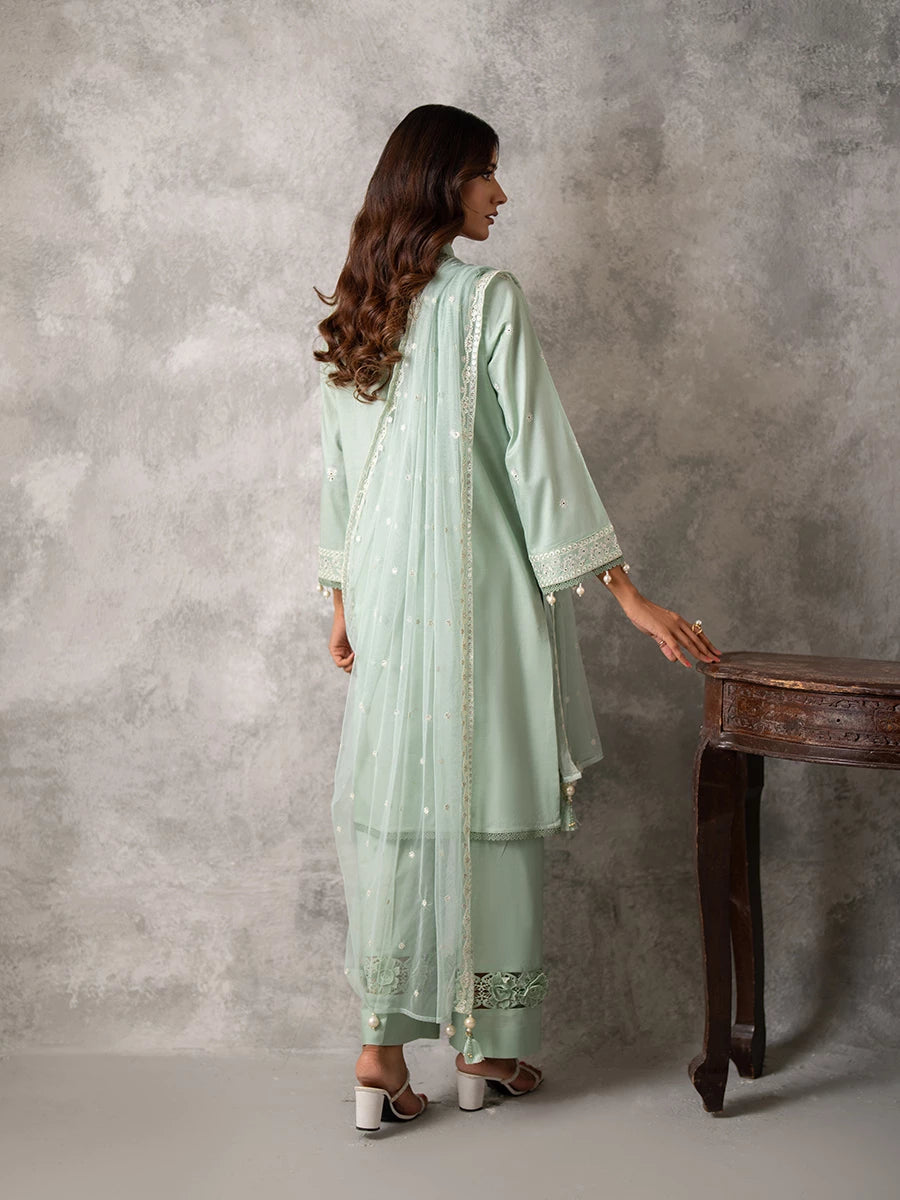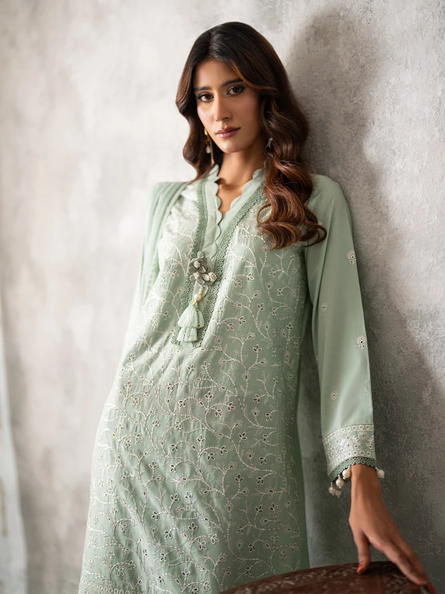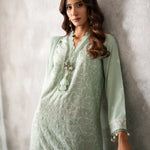 LAWN DYED EMBROIDERED CHIKANKARI SHIRT: