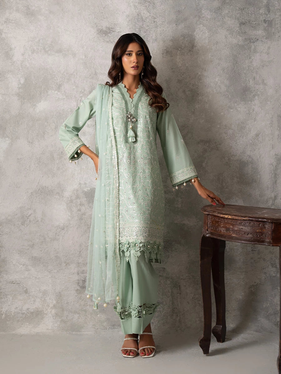 Note: Extra tassels, laces and Boxes for shoot purpose wouldn't be included in Unstitched Dresses, They are only for Model Shoot Purpose.