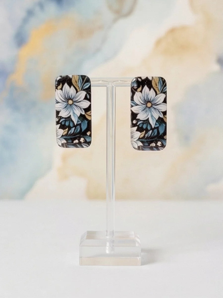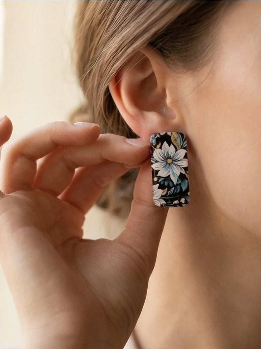 Floralite handmade resin earrings showcase a delicate floral design with soft, pastel hues. Each pair is uniquely crafted, offering a subtle yet elegant touch to your ensemble.