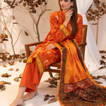 Embrace the warmth and elegance of winter with this stunning khaddar outfit. This set includes a beautifully printed and embroidered khaddar shirt that exudes charm and sophistication. The intricate embroidery adds a luxurious touch to the earthy, cozy fabric, making it perfect for any winter occasion. Paired with a vibrant printed shawl for added style and comfort, this ensemble provides a complete seasonal look. The dyed khaddar trouser complements the shirt’s design effortlessly, bringing versatility and style to your wardrobe. Perfect for both casual gatherings and semi-formal events, this outfit embodies tradition with a modern flair.