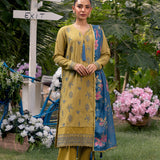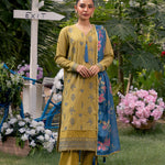Embrace elegance with this mustard 3-piece unstitched suit, featuring a dyed embroidered front and a vibrant printed dupatta—gorgeous style at an unbeatable price!