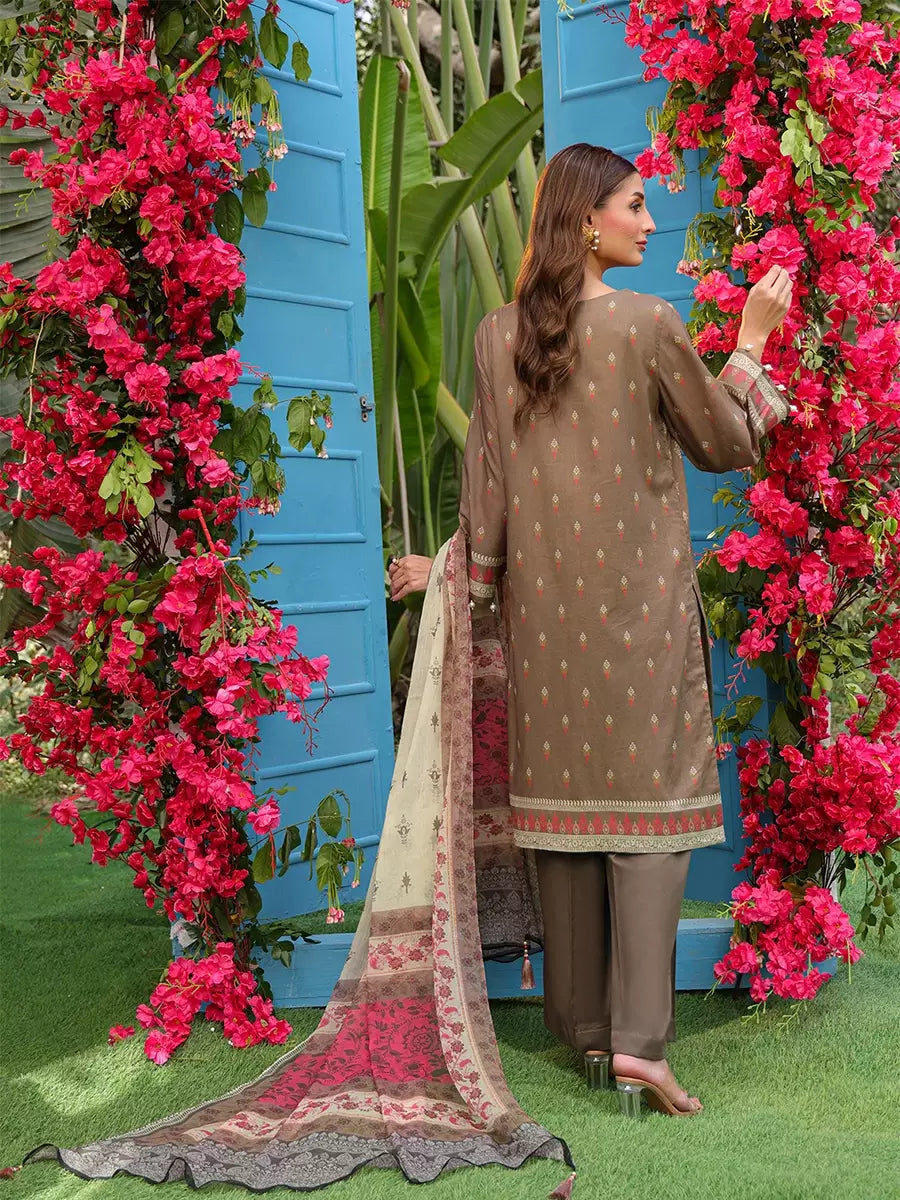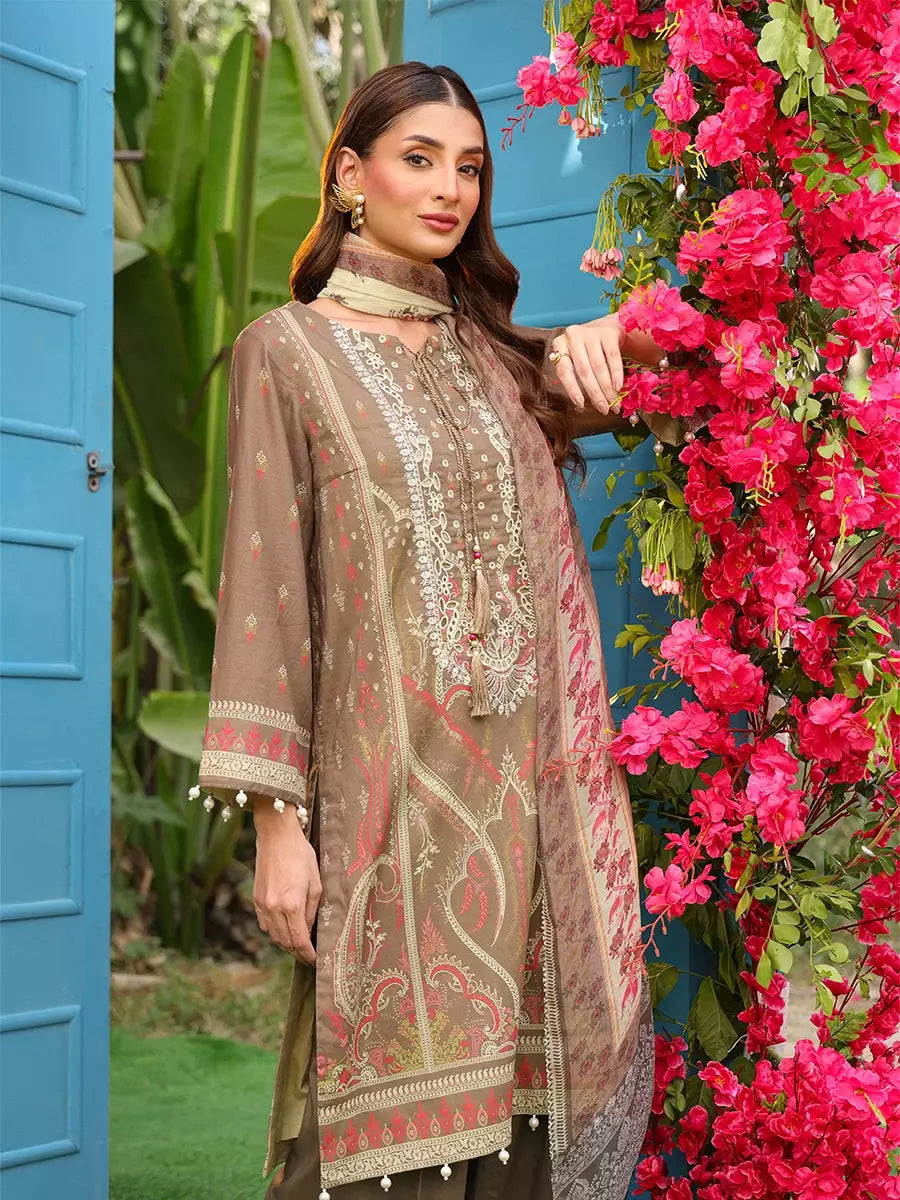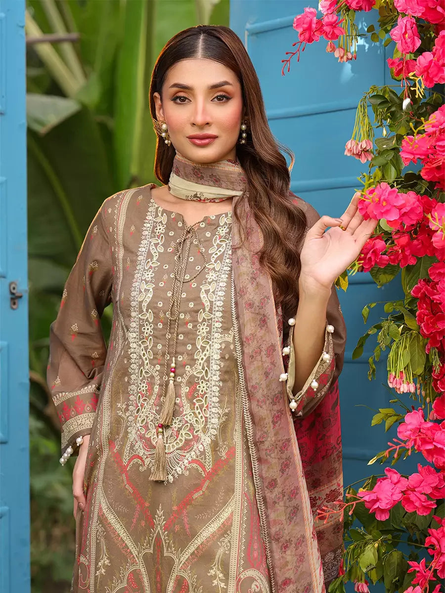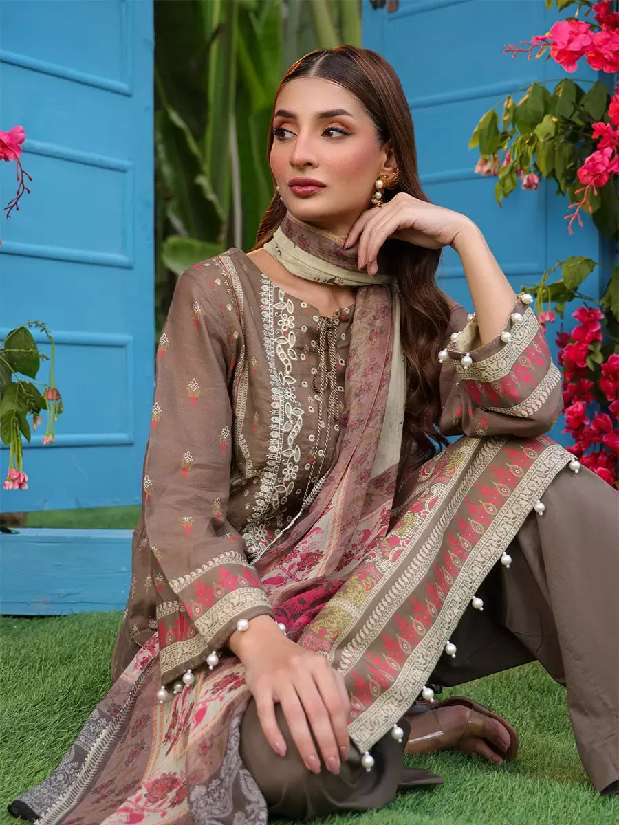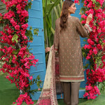 Elevate your look with this chic cambric printed and embroidered shirt, paired with a flowing printed chiffon dupatta. Complete the outfit with a perfectly dyed cambric trouser for a graceful finish