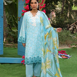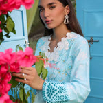 Elevate your look with this chic cambric printed and embroidered shirt, paired with a flowing printed chiffon dupatta. Complete the outfit with a perfectly dyed cambric trouser for a graceful finish