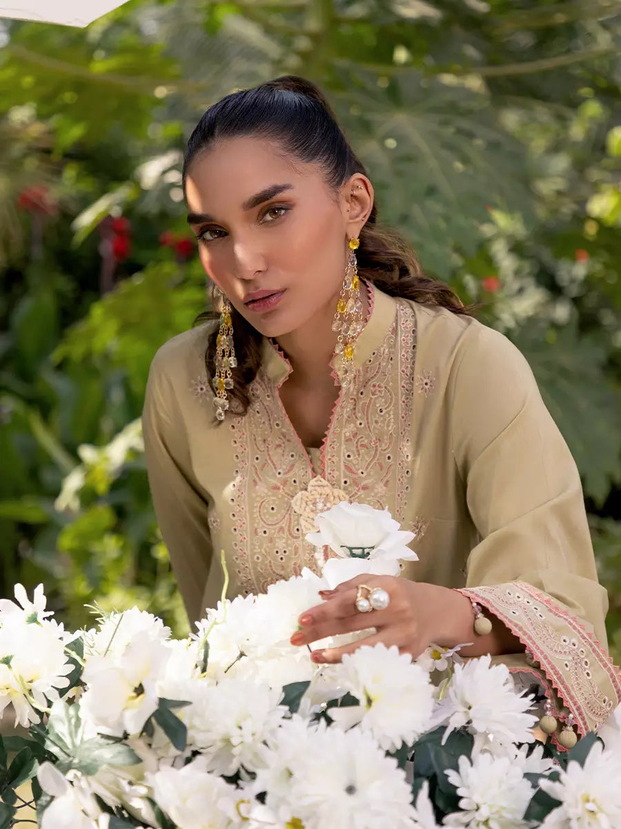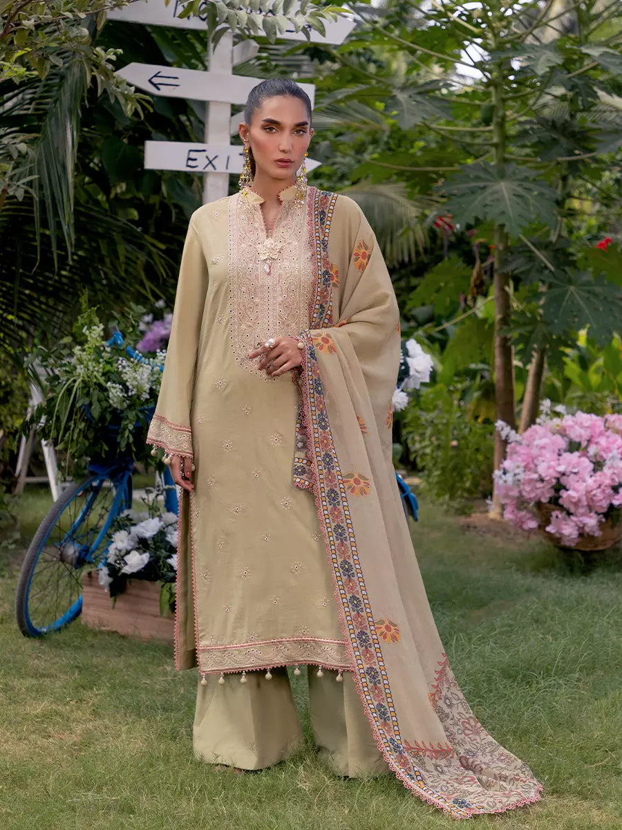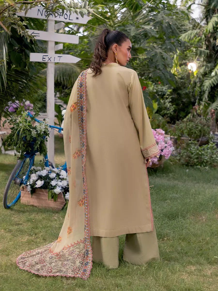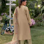 Embody elegance with this pastel green 3-piece unstitched suit, featuring delicate front embroidery and a lovely printed dupatta. A perfect choice for a fresh and graceful look at an affordable price