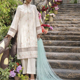 The outfit is completed with a beautifully embroidered net dupatta, adding an extra layer of grace and refinement. Whether you're attending a formal event or a festive gathering, this ensemble is sure to make you stand out with its intricate detailing and timeless appeal