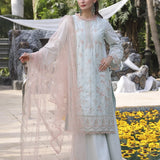 The outfit is completed with a beautifully embroidered net dupatta, adding an extra layer of grace and refinement. Whether you're attending a formal event or a festive gathering, this ensemble is sure to make you stand out with its intricate detailing and timeless appeal