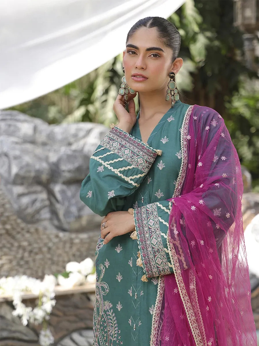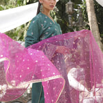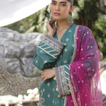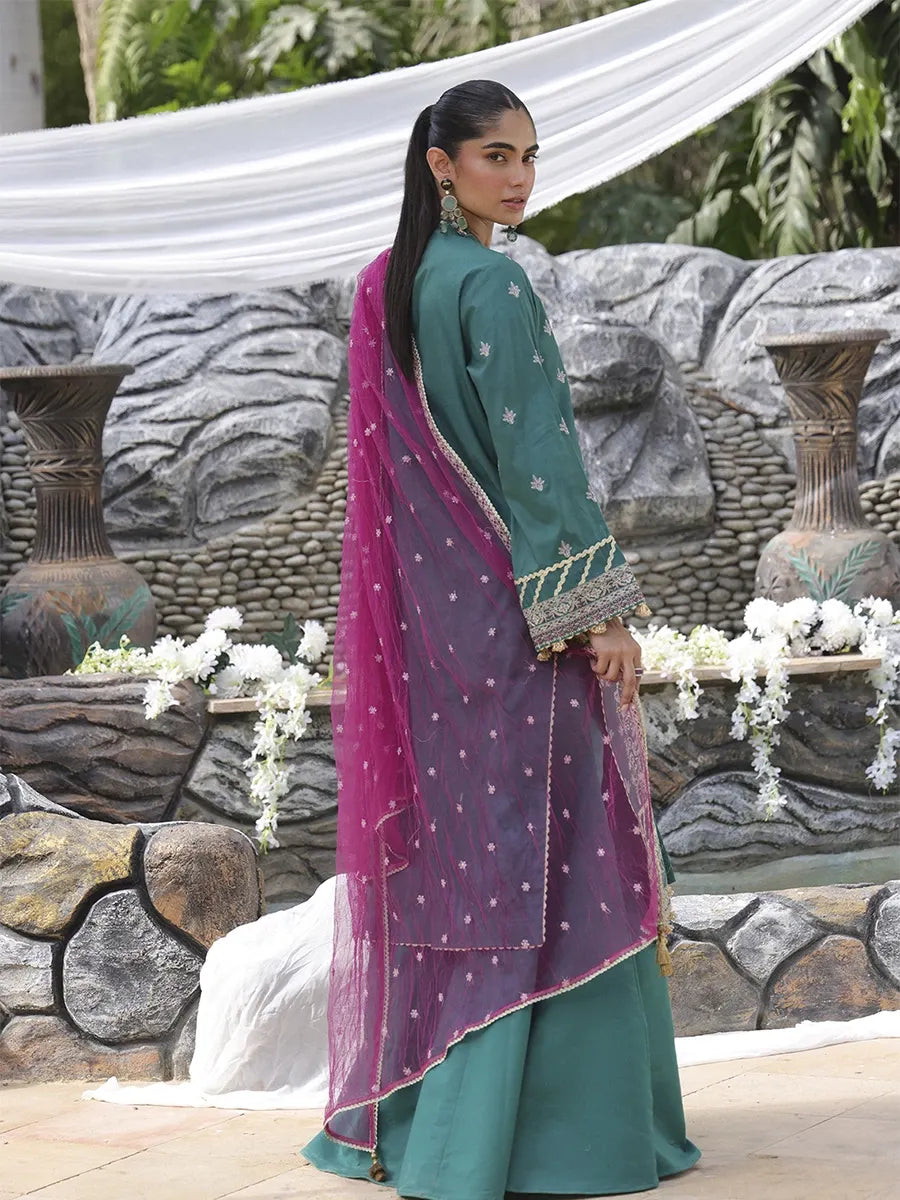 The outfit is completed with a beautifully embroidered net dupatta, adding an extra layer of grace and refinement. Whether you're attending a formal event or a festive gathering, this ensemble is sure to make you stand out with its intricate detailing and timeless appeal