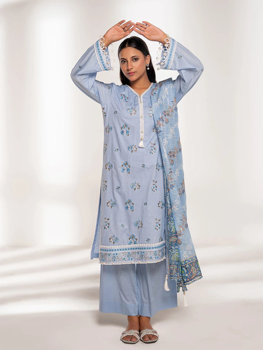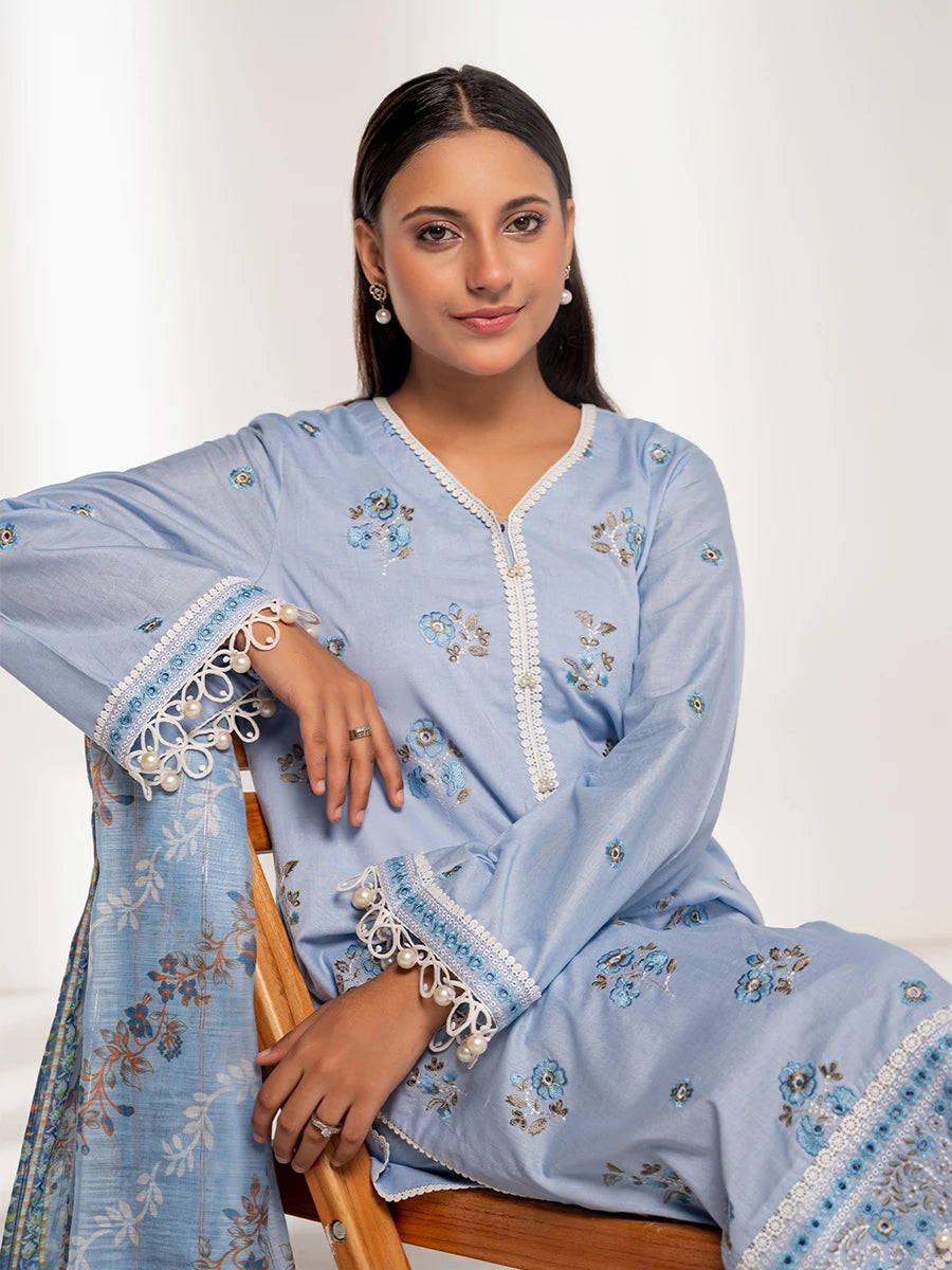 3PC EMBROIDERED LAWN SUIT (ALM030)