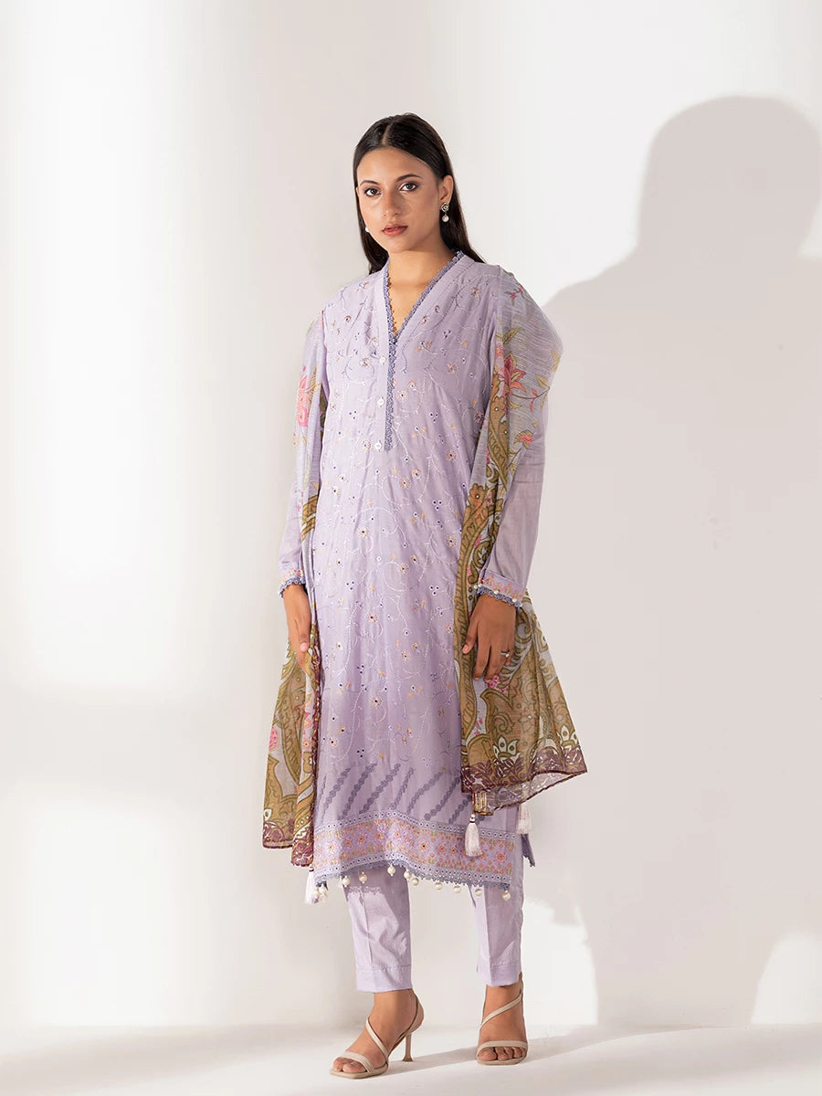 3PC EMBROIDERED LAWN SUIT (ALM036)