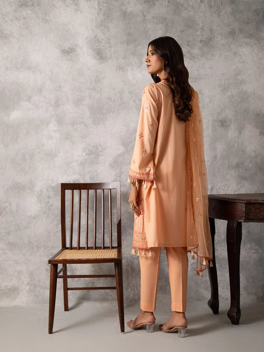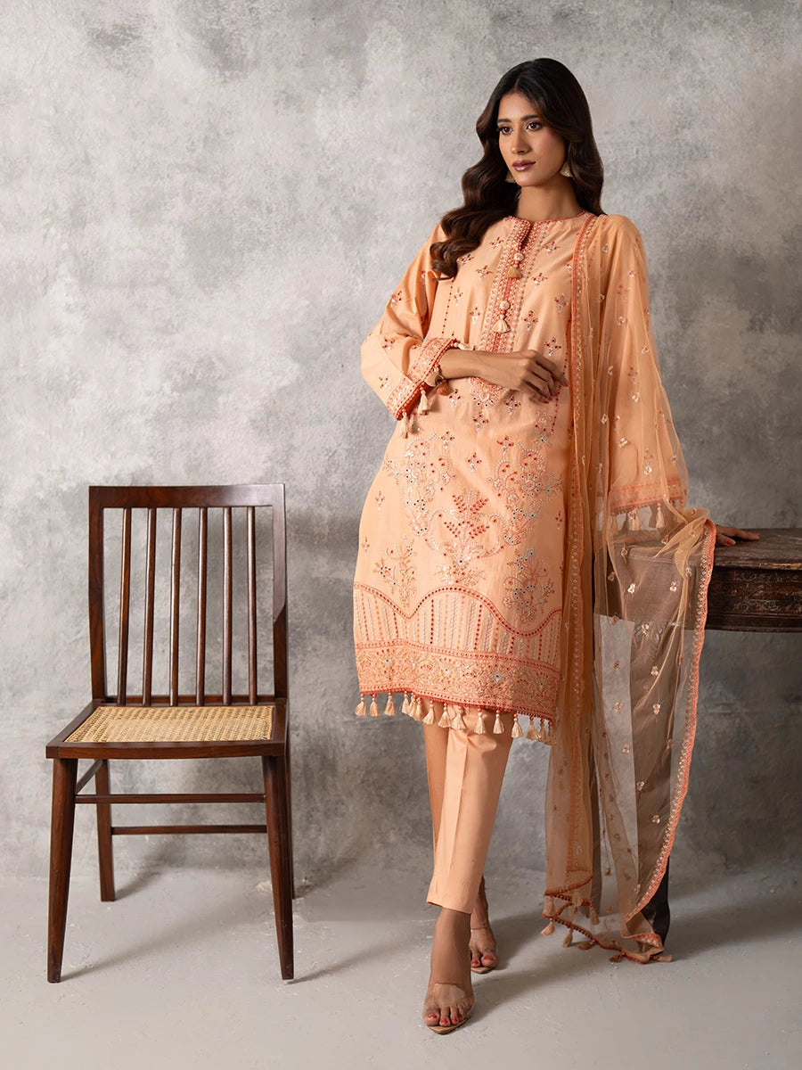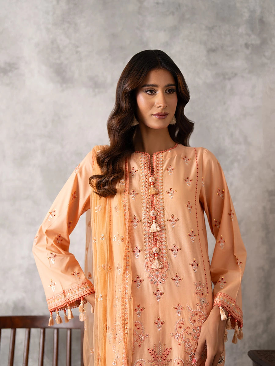Experience effortless elegance with our Lawn Dyed Embroidered Chikankari Shirt—crafted from soft, breathable fabric and adorned with delicate embroidery and sequins for a subtle sparkle. Paired with an Embroidered Dupatta featuring intricate detailing and shimmering sequins, it adds the perfect touch of glamour. Complete the look with a Cambric Dyed Plain Trouser, tailored for comfort and versatility, making this ensemble ideal for any special occasion.