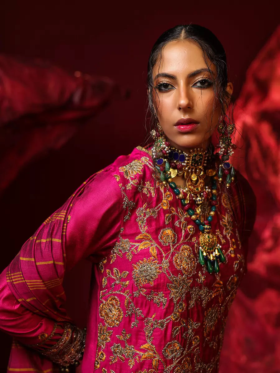Introducing our luxurious pale green dress, adorned with royal Gotta embroidery in fluorescent pink and blue. This elegant ensemble exudes effortless charm and sophistication. The intricate Gotta embroidery beautifully embellishes the bodice, sleeves, and hemline, creating a mesmerizing pattern. The high-quality fabric drapes gracefully, ensuring both comfort and durability. Complete with a Karandi dupatta, this dress is perfect for weddings, festive celebrations, and special occasions. Embrace the beauty of traditional craftsmanship and contemporary style with this stunning pale green dress. Stand out from the crowd and radiate confidence and grace.